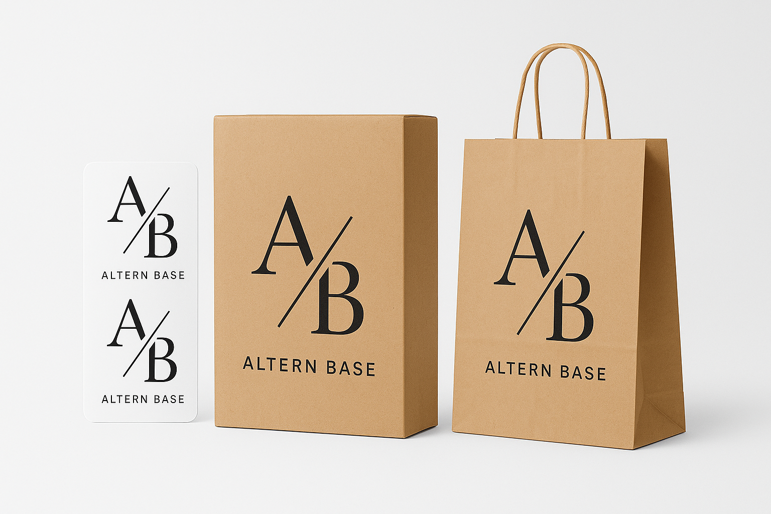 Packaging y pegatinas personalizadas Altern Base: identidad de marca con estilo